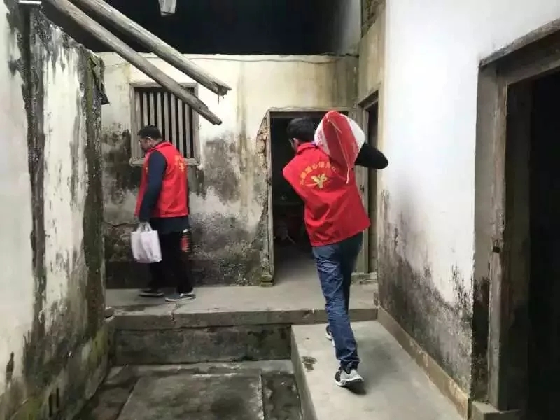 当天爱心活动第一站:来到紫金县凤安镇黄龙村委会下新村看望81岁的 陈X如老人,老人有一个有精神障碍的儿子,母子无正常劳动力,生活靠远房亲人接济,母子不和,同住危房,各煮各吃。无低保,每逢雨天房屋严重漏水,老人木床变水床,老人生活贫困。