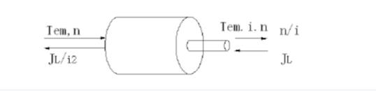我们再来看一下齿轮减速器对转动惯量的作用,由能量不灭的基本原理,在传动链中,同一时刻的储能相等: